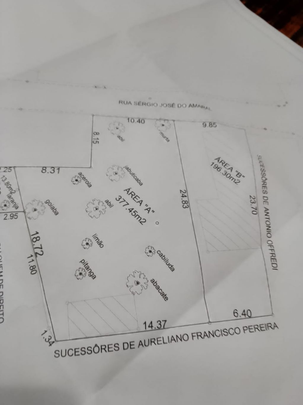 Lote de terreno em duas áreas, 377,45m² e outra com196,30m² em um total de 573,75m² no centro de Magé RJ.